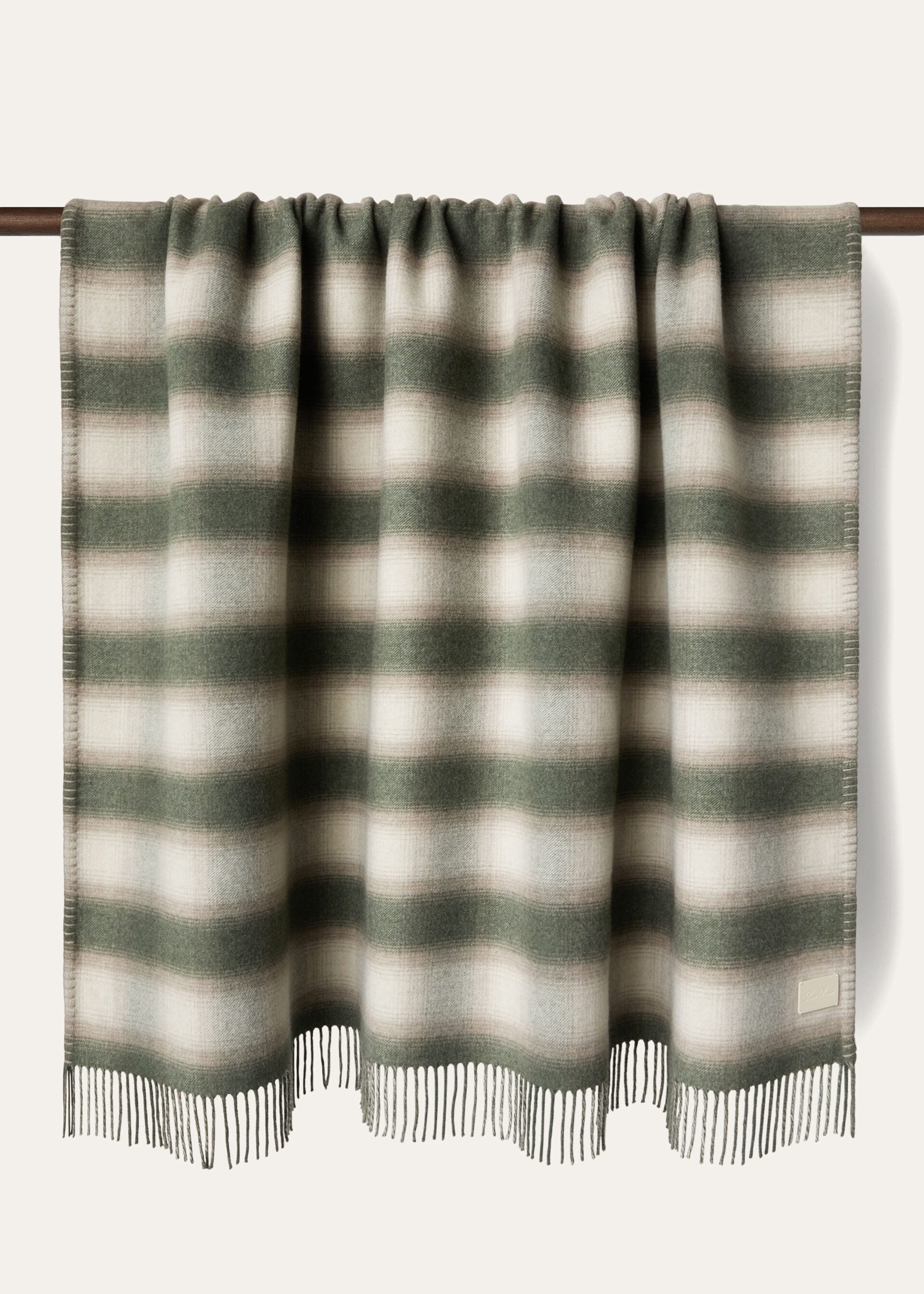 The Tartan Flannel plaid reflects the eternal grace of Loro Piana, paying tribute to its storied textile heritage. This exquisite throw exudes refined luxury through its double-layered cashmere Wish® wool construction, which features a check pattern on the front and a solid reverse. Hand-embroidered blanket stitching adorns the longer sides, culminating in fringed shorter ends and an embossed leather label.